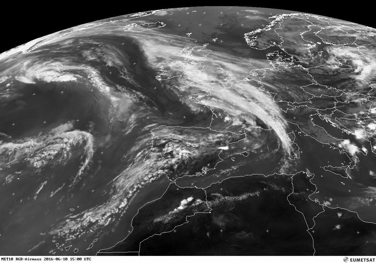 | Dal satellite oggi alle 15, ben evidente l'arrivo del fronte perturbato atlantico (foto www.nimbus.it) |